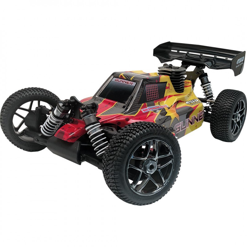 Coche radiocontrolado todoterreno con motor térmico a escala 1/8, el GUNNER V3 es el vehículo ideal si deseas iniciarte en el mundo de los motores térmicos.