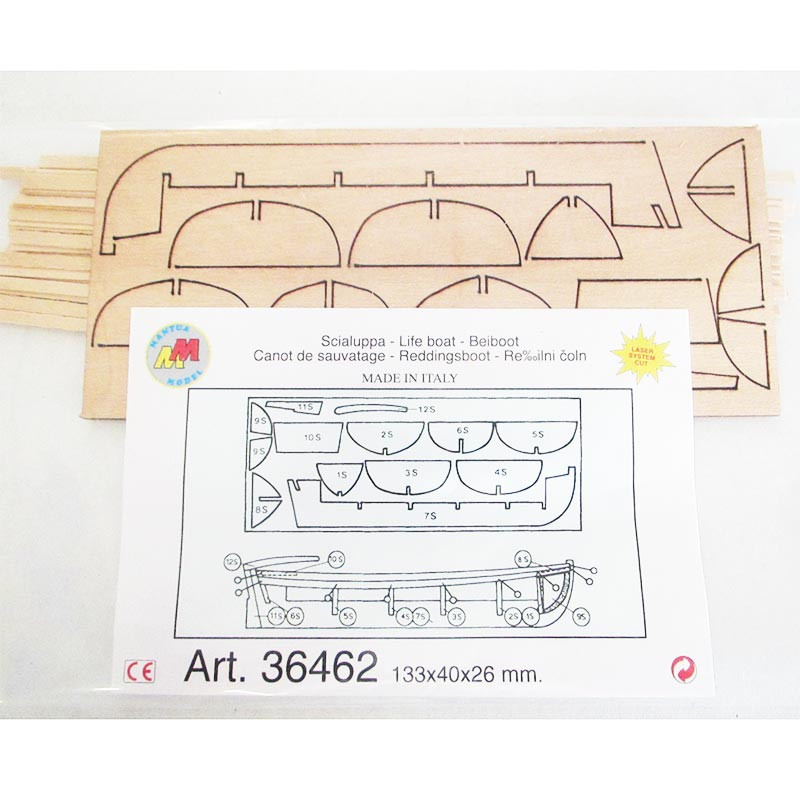 Grand canot de survie 133 x 40 x 26mm. Canot en bois à construire à partir de pièces découpées au laser.