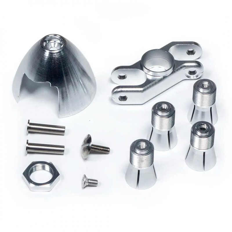 Plus de details En stock, disponible immédiatementAccessoire embarqué Cône aluminium diam. 30mm avec hélice repliable 9x6, 4 pinces de fixation incluses