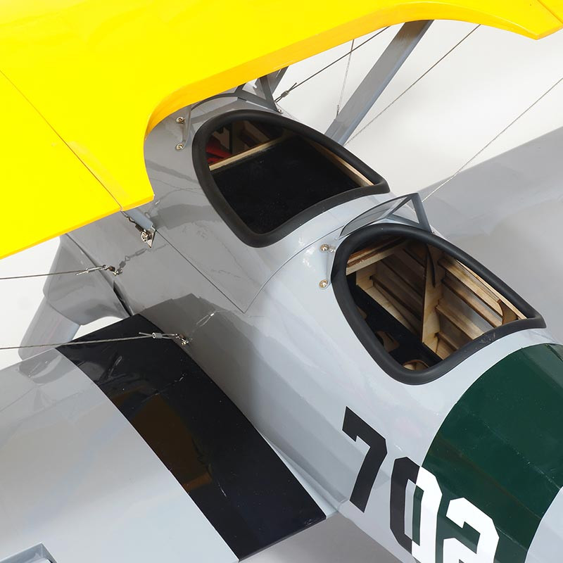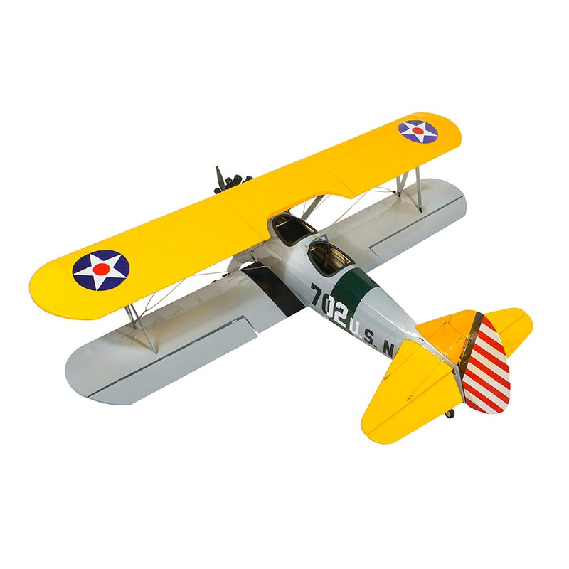Magnifique réplique radiocommandée du célèbre biplan Américain d’entrainement. Conçu pour une motorisation électrique Brushless.