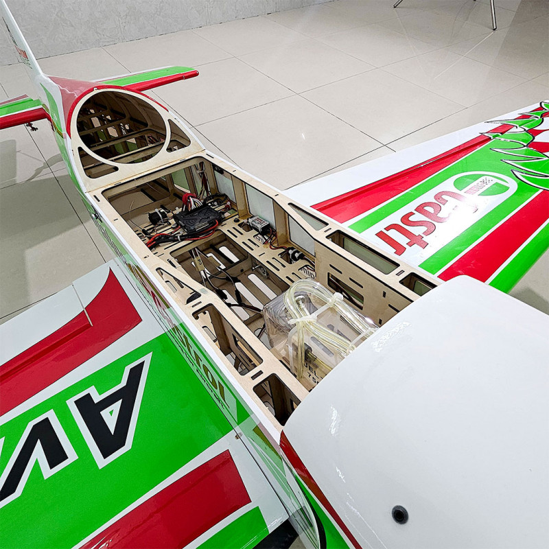 Una gran trampilla extraíble bajo la cabina permite acceder rápida y fácilmente a todos los equipos de radio, servos y al sistema de alimentación de combustible.
