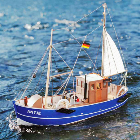 El kit de construcción del barco Antje es una reproducción fiel de un cúter de pesca típico del Mar del Norte y del Mar Báltico.
