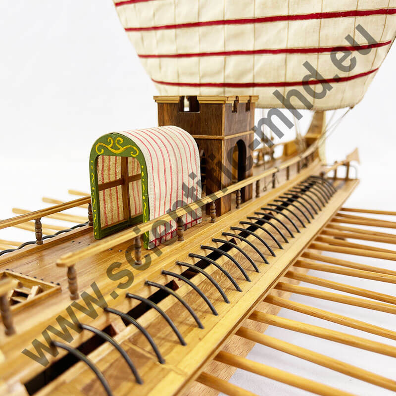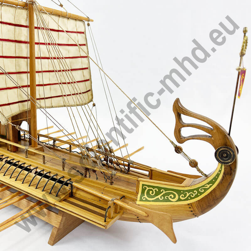 Façonnée avec précision et exactitude historique, cette Birème se tient comme un témoignage de l'ingéniosité maritime de la Rome antique. Elle offre un aperçu d'une époque où la suprématie navale était une pierre angulaire stratégique, et où des navires tels que celui-ci jouèrent un rôle crucial dans la formation du cours de l'histoire.