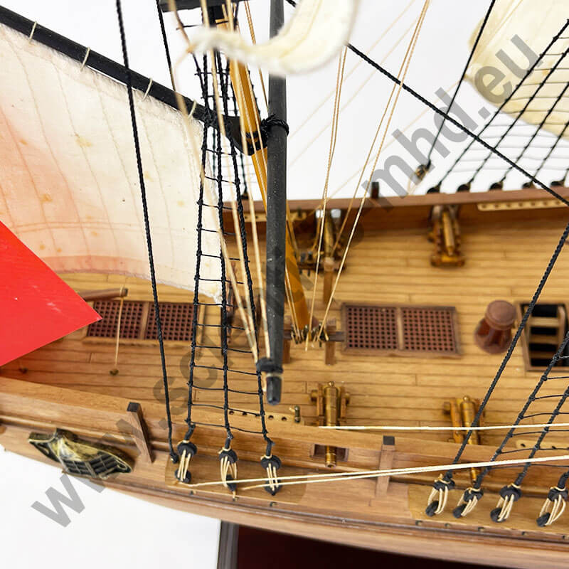Fabriqués avec les bois de la plus haute qualité, ces bateaux incarnent un réalisme saisissant, créant une symbiose parfaite entre l'art et l'artisanat. Les tonalités riches des bois utilisés ajoutent une dimension chaleureuse à ces chefs-d'œuvre miniatures, faisant écho à l'héritage maritime qu'ils représentent.