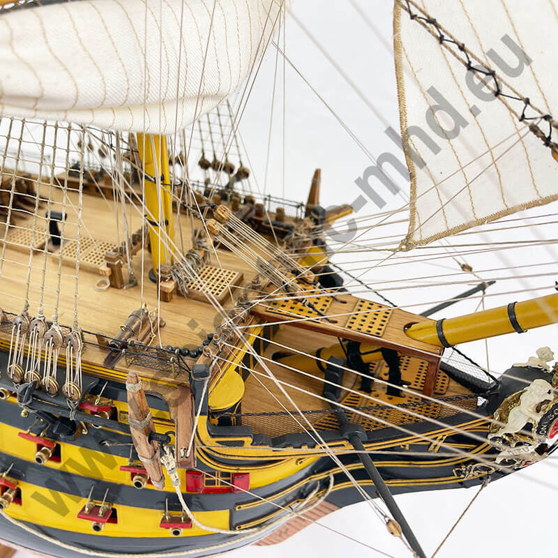 Cette maquette du H.M.S. Victory peut être assemblée sans ou avec les voiles, disponibles en option sous la référence S06834025.