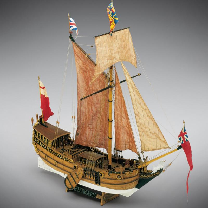 Le Yacht Mary fut construit dans les Pays Bas et fut donn� comme caveau au Prince Charles Stuart par la ville d�Amsterdam � l�occasion de sa proclamation comme roi d�Angleterre. Il est consid�r� comme le prototype des bateaux de plaisance. La reconstruction du mod�le a �t� facilit�e par un peinture de Van der Vendel et surtout par les pi�ces arch�ologiques mises au jour dans les ann�es pass�es sur le lieu o� le navire fit naufrage. Le mod�le est donc tout � fait digne de foi et est identique dans le proc�d� de construction � nos autres mod�les de dimensions sup�rieures. Il est tr�s riche en d�corations qui sont propos�es en fusions tir�es de pi�ces exclusives d�un sculpteur renomm�.