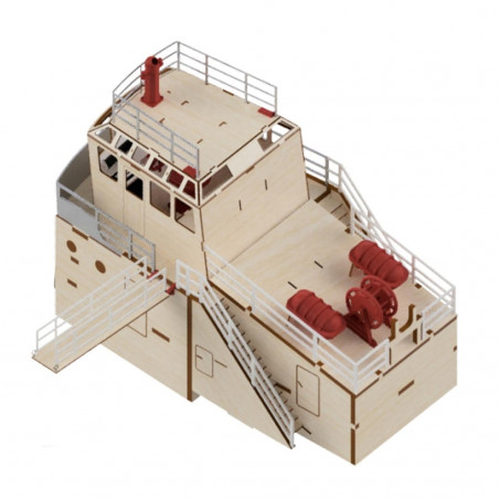 Este kit constituye un excelente proyecto para los aficionados que deseen construir un barco teledirigido para construir, inspirado en un remolcador portuario moderno y realista.