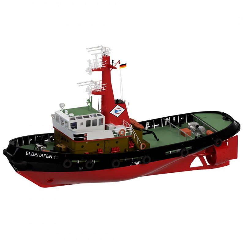 El remolcador rompehielos ELBEHAFEN 1/50 es una magnífica maqueta de barco de radiocontrol para armar, inspirada en un remolcador real que opera en la desembocadura del Elba, en el Mar del Norte.