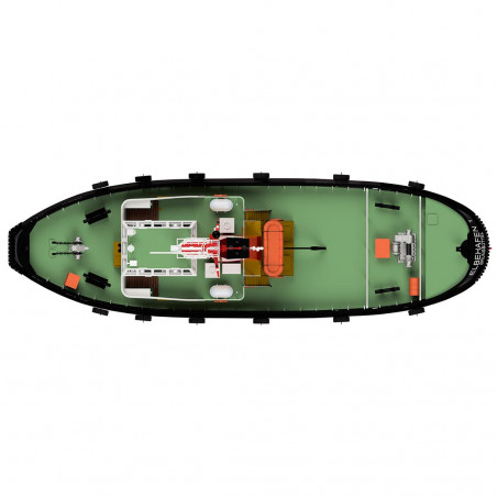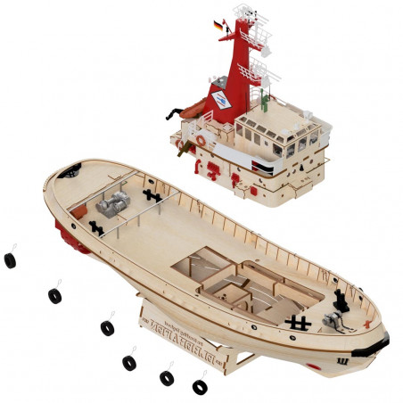 Este kit es un proyecto ideal para los entusiastas que desean construir un barco radiocomandado para armar inspirado en los remolcadores rompehielos utilizados en los puertos del Mar del Norte.