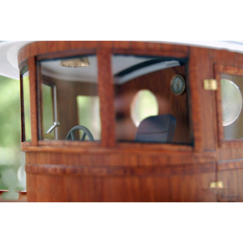 Los accesorios impresos en resina 3D, los elementos de latón fotograbados y los cristales transparentes mejoran el acabado de este barco de radiocontrol para armar.