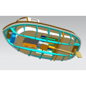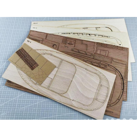 El kit también incluye el motor eléctrico y la transmisión, lo que permite convertir fácilmente este kit de barco de madera en un barco de radiocontrol.