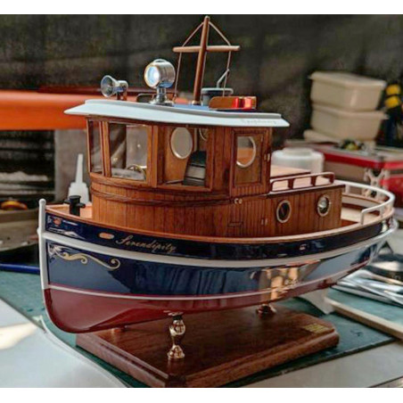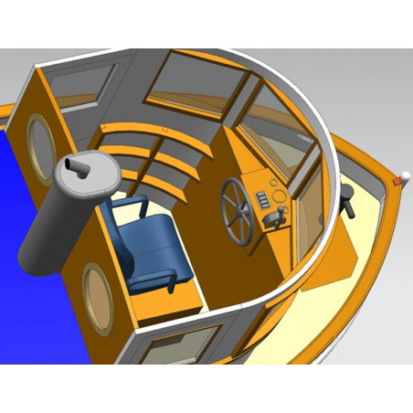 Solo necesitas añadir una radio de 2 canales, un micro servo, un variador y una batería LiPo 2S 1300 mAh. Encuentro este mini remolcador de radiocontrol perfecto para principiantes o para completar una colección de modelos de barcos originales.