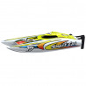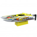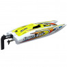 Gracias a su potente motor clase 390 refrigerado por agua, este barco teledirigido eléctrico puede alcanzar hasta 25 km/h, una velocidad perfecta para divertirse en un estanque, un lago o en una gran piscina. Ideal para organizar verdaderas carreras de barcos teledirigidos entre amigos y disfrutar de sensaciones dignas del barco RC de velocidad.