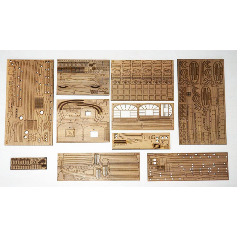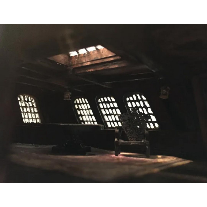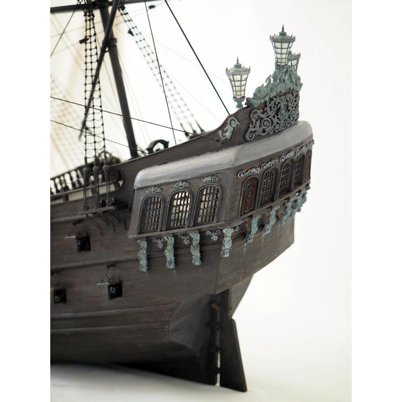 Esta maqueta Black Pearl ZHL 1/50 ofrece una reproducción completa con interior visible y elementos decorativos adicionales. Los puentes están detallados, las cabinas están amuebladas y los accesorios suministrados permiten obtener un aspecto realista una vez que se completa el modelo.