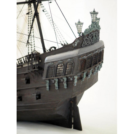 Esta maqueta Black Pearl de madera 1/50 es ideal para exhibirla en una vitrina o para completar una colección de barcos piratas.