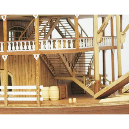 Con su tamaño compacto y su nivel de detalle equilibrado, esta maqueta de barco de vapor Mississippi es perfecta para los entusiastas del modelismo naval que deseen construir un barco de vapor histórico.