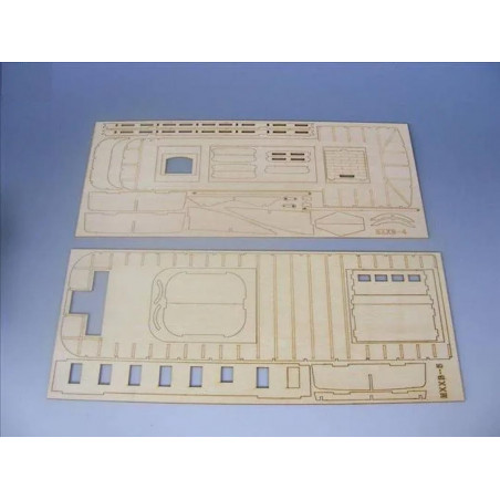 La estructura de madera cortada con láser permite un montaje preciso, mientras que los numerosos elementos decorativos proporcionan un aspecto realista una vez que se completa el modelo.