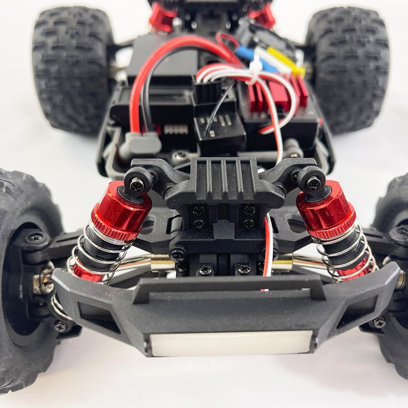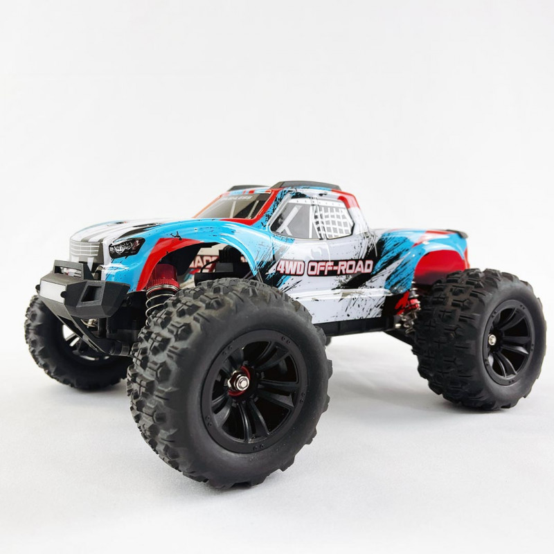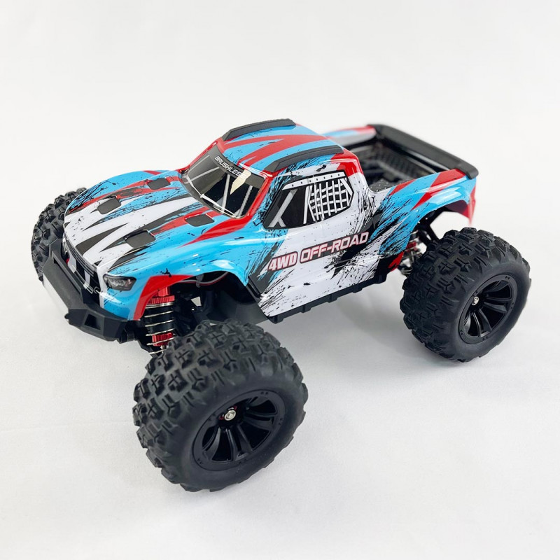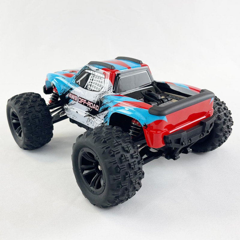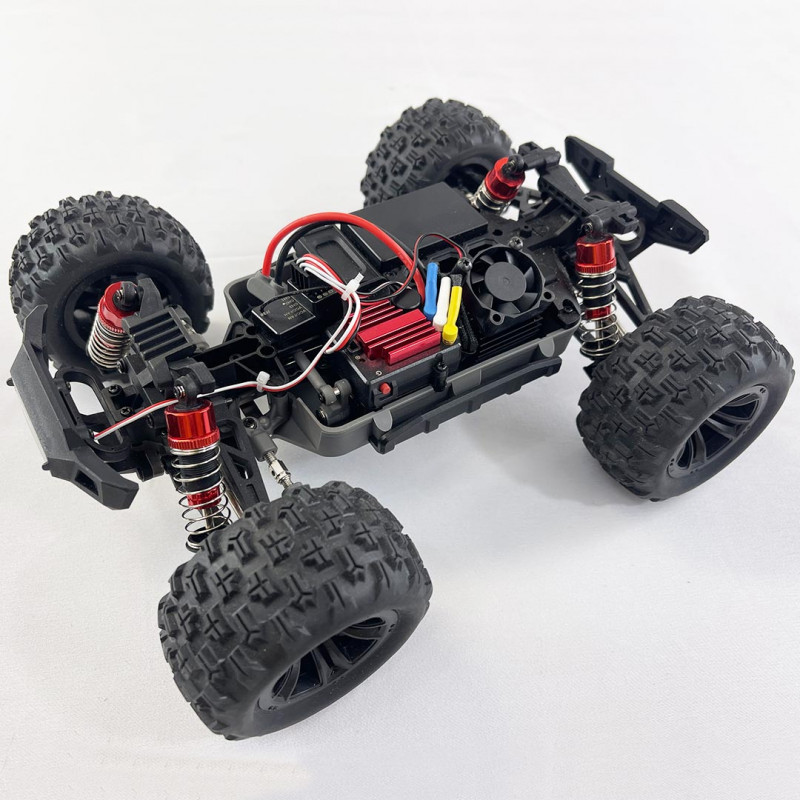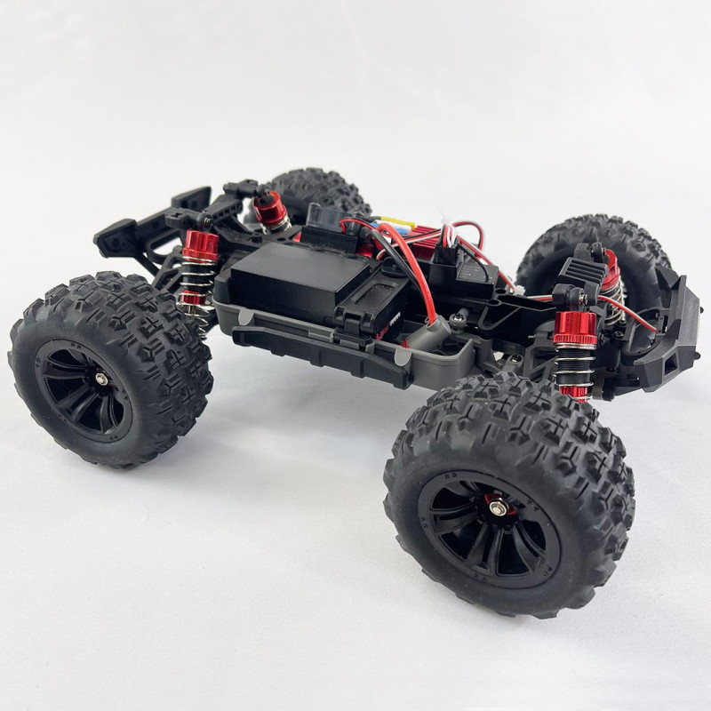 Esta versión Monster Truck viene equipada de serie con una batería 2S (7,4 Voltios) de 1050 mAh, lo que le permite alcanzar aproximadamente los 60 km/h.