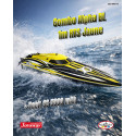 Gracias a su transmisión por eje flexible de 5 mm, a su timón de aluminio mecanizado CNC y a su potente servo de dirección, el Alpha BL combina velocidad, precisión de manejo y estabilidad en curvas rápidas.JOYSWAY incluye 2 hélices de metal, para poder equipar su Alpha con baterías LiPo de 2 o 3 elementos a elección.También se incluye un soporte para colocar el barco en la orilla.SF/MHD añade a su oferta el control remoto de 4 canales MHD3S.