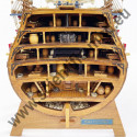 La disposition permet de voir tous les ponts intérieurs (5), le fonds de cale sans oublier le pont principal et leurs aménagements, avec les canons en bronze, les barils de poudre, les boulets de canons, les sceaux et les cordages.