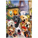 Este puzzle de 200 piezas muestra a simpáticos perritos haciéndose un selfie frente a la Torre Eiffel.