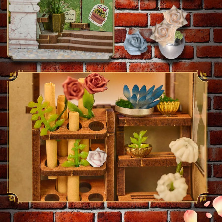 BLOSSOMARY ATELIER, sujetalibros (Book Nook) principalmente de madera para montar uno mismo (Do It Yourself).