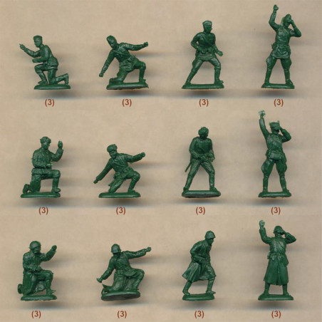 Las cajas generalmente contienen varias decenas de figuras con diferentes poses (combate, marcha, disparo, comando), lo que favorece la creación de escenas realistas.