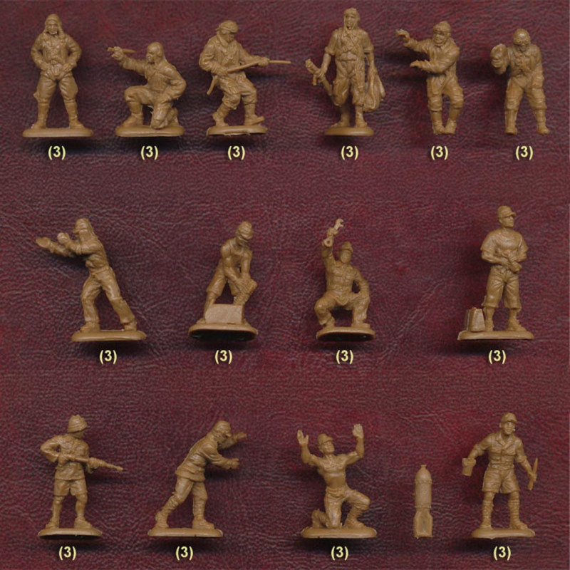Las cajas suelen contener varias decenas de figuras con poses variadas, ofreciendo un buen aspecto visual para dioramas o juegos de estrategia.