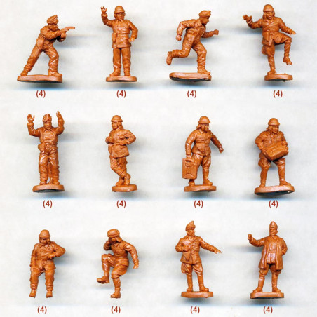 Las cajas suelen contener varias decenas de figuras con diferentes poses (combate, marcha, disparo, comando), lo que facilita la creación de escenas realistas.