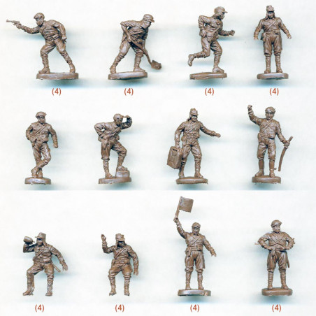 Las cajas generalmente contienen varias decenas de figuras con diferentes poses (combate, marcha, disparo, comando), lo que favorece la creación de escenas realistas.