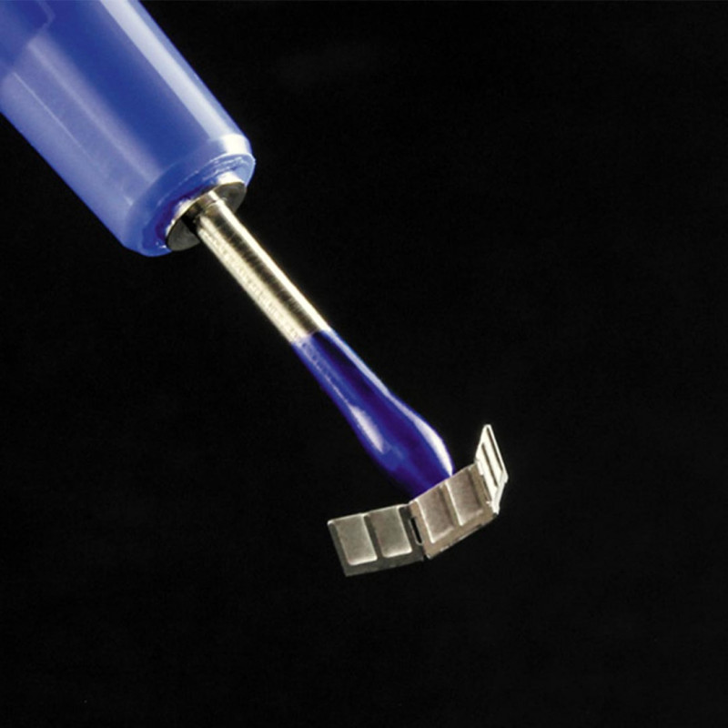 Se trata de una práctica herramienta que, gracias al cabezal adhesivo del extremo, permite agarrar fácilmente piezas muy pequeñas que resultan difíciles de coger con pinzas.