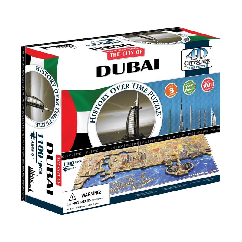 Le produit comprend un Time Poster qui vous guide dans le temps alors que vous reconstruisez l'histoire de la skyline de Dubaï.
