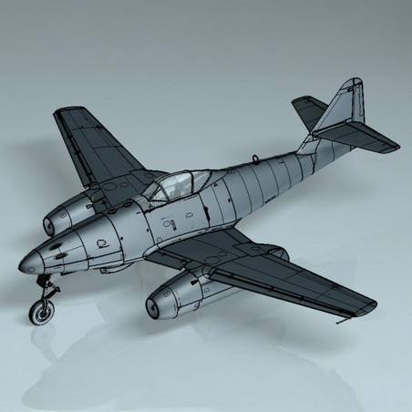 El proyecto se centra en la reproducción fiel de la forma del avión, la geometría correcta y un alto nivel de detalle, al tiempo que mantiene un diseño de ensamblaje lógico y fácil para los modeladores. El modelo reproduce las características del Me 262, incluidos los tragaluces desplegados, las bahías de aterrizaje ricamente detalladas, los cohetes aire-aire R4M y las bombas de 250 kg.