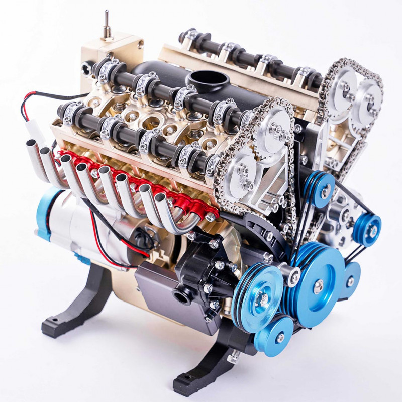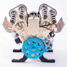 Nuestras maquetas de motor V8 están compuestas por piezas de aluminio anodizado y acero inoxidable, fundidas y mecanizadas con precisión. Cada componente se basa en motores reales de alto rendimiento. Es una introducción perfecta a la ingeniería y la mecánica.