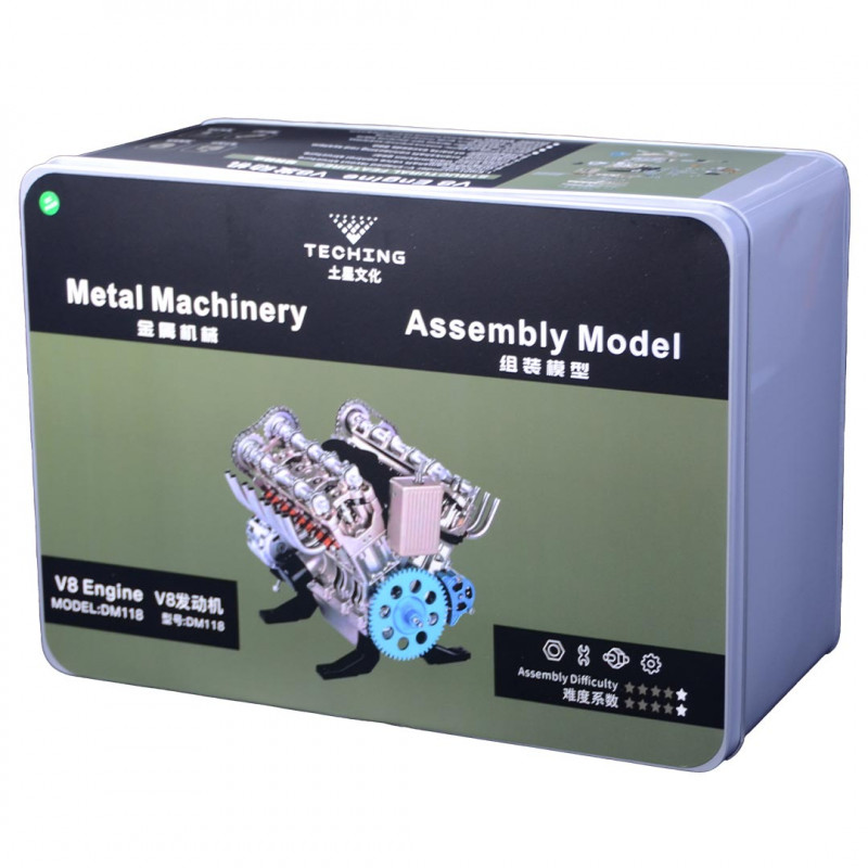 Presentado en una caja metálica de regalo resistente y colorida, este kit de motor V8 es un regalo original y técnico para aficionados a la mecánica, coleccionistas o amantes del modelismo. Elegante, funcional y educativo.