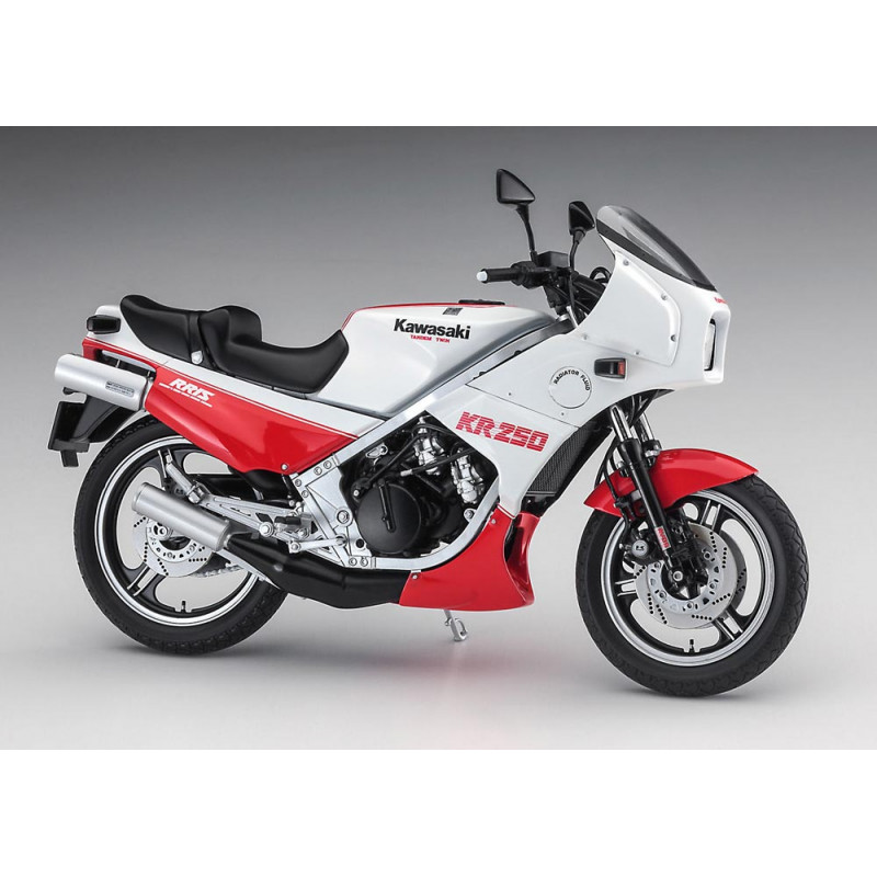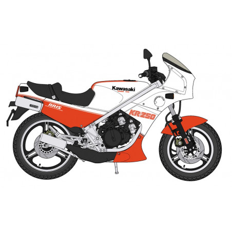 Maqueta de plástico de la motocicleta Kawasaki KR250(KR250A) "Blanca/Roja" 1:12