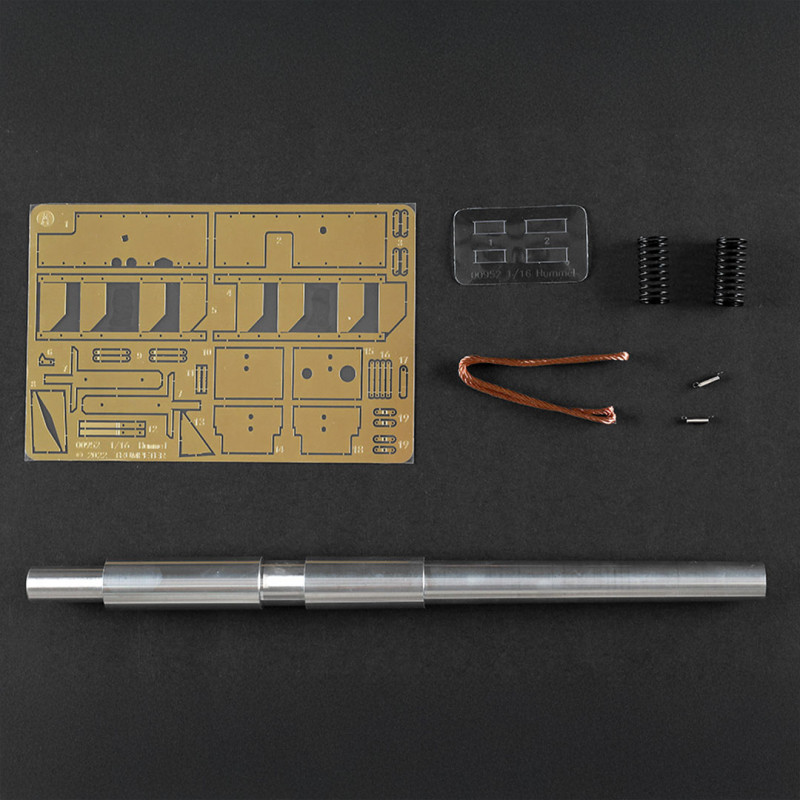 • Piezas de metal: cable de cobre, tubo de acero inoxidable, cañón, resorte.