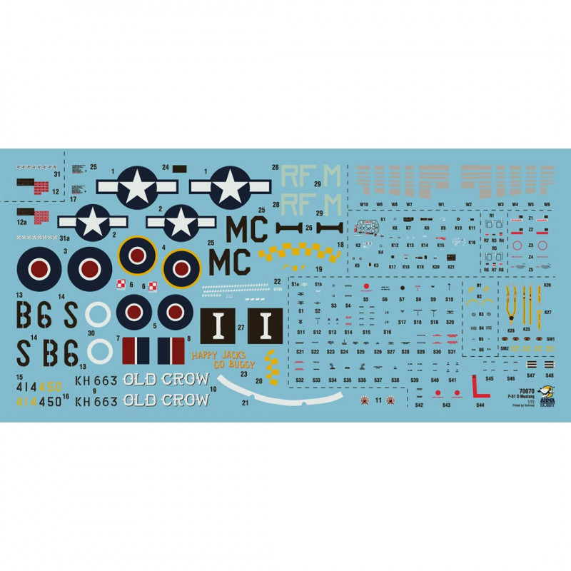 The model is based on the original Arma Hobby 2025 mold and allows you to build all operational variants of World War II: P-51D, P-51K, and F-6D/K (photographic reconnaissance aircraft).