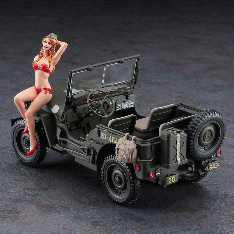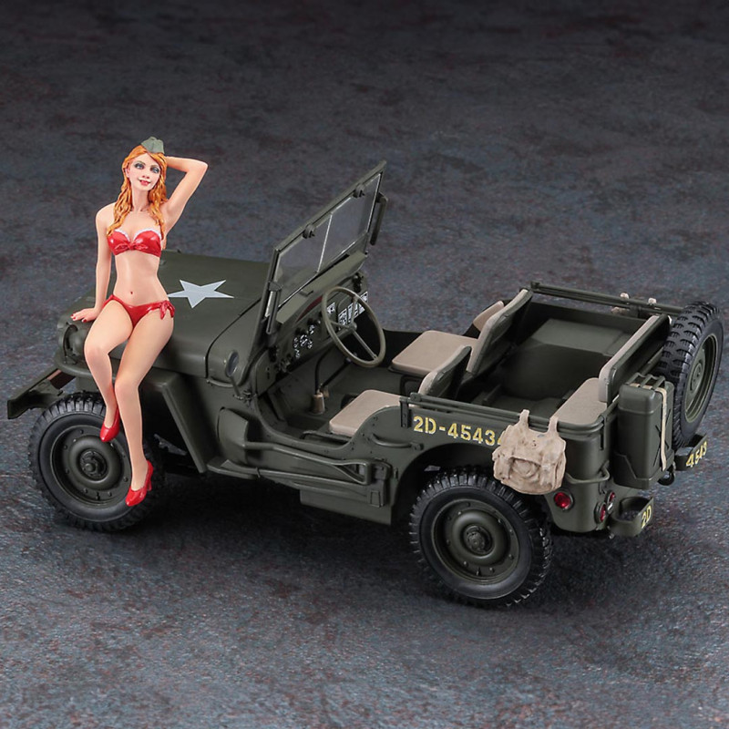 Maquetta de plástico de un famoso vehículo todoterreno estadounidense acompañado de una exclusiva figura de resina.