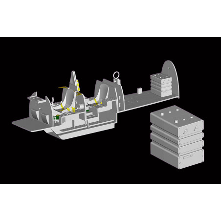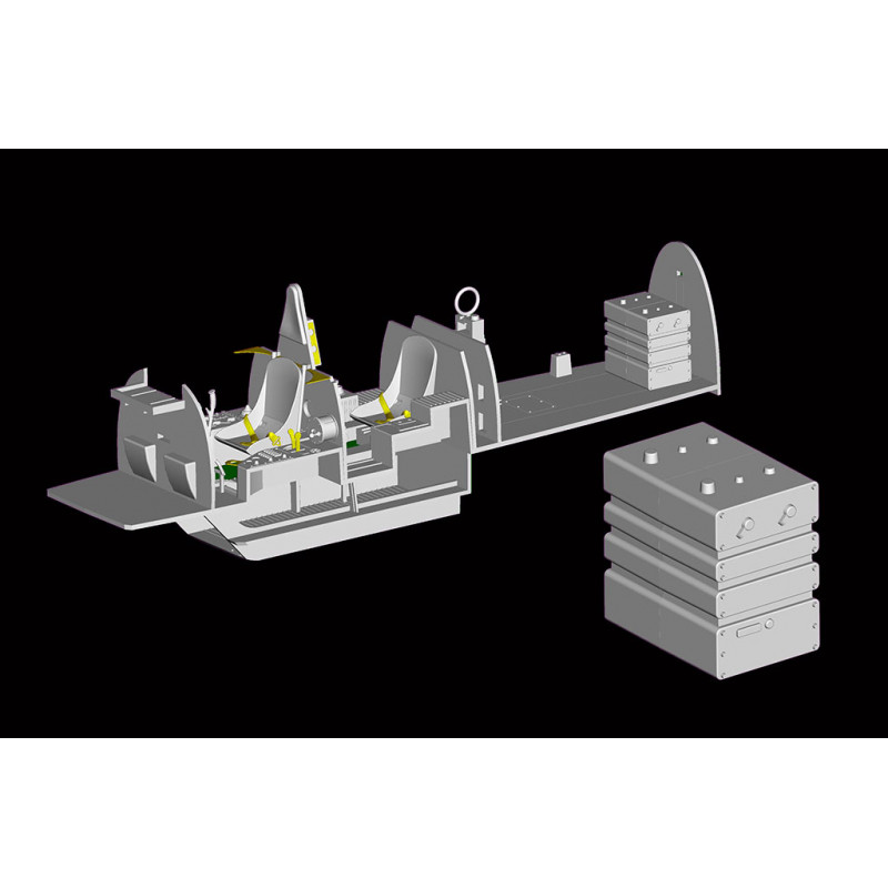 4. Cabina Detallada: Una de las partes más impresionantes de esta maqueta es la cabina detallada. Los instrumentos, los asientos, los controles y otros elementos internos están reproducidos minuciosamente para ofrecer una vista realista a través del parabrisas.