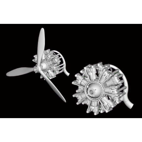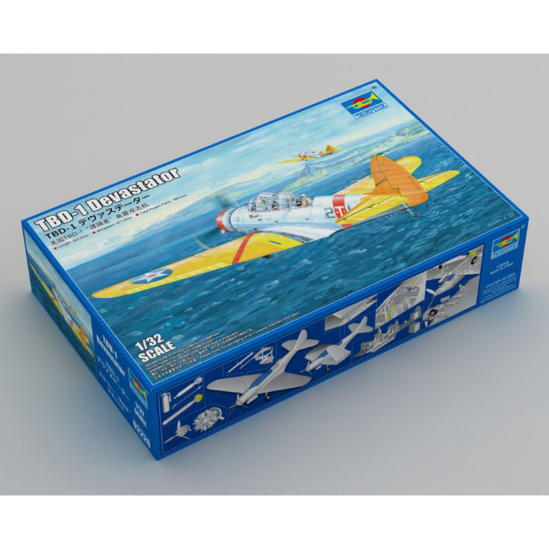 This TBD-1 Devastator plastic model kit to assemble in 1:32 scale from the Trumpeter brand contains 180 pieces to assemble.