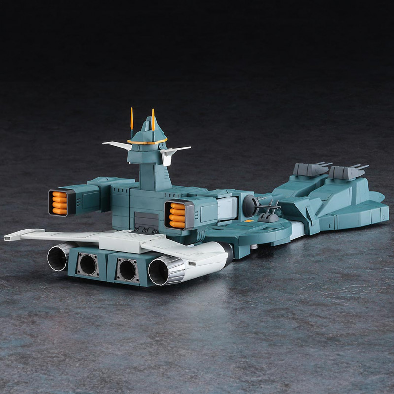 Aquí está la nave de tercera generación del anime Battle Mecha Xabungle, este modelo de plástico se ensambla sin pegamento y se reduce el uso de pintura gracias al moldeo de las piezas en 6 colores.