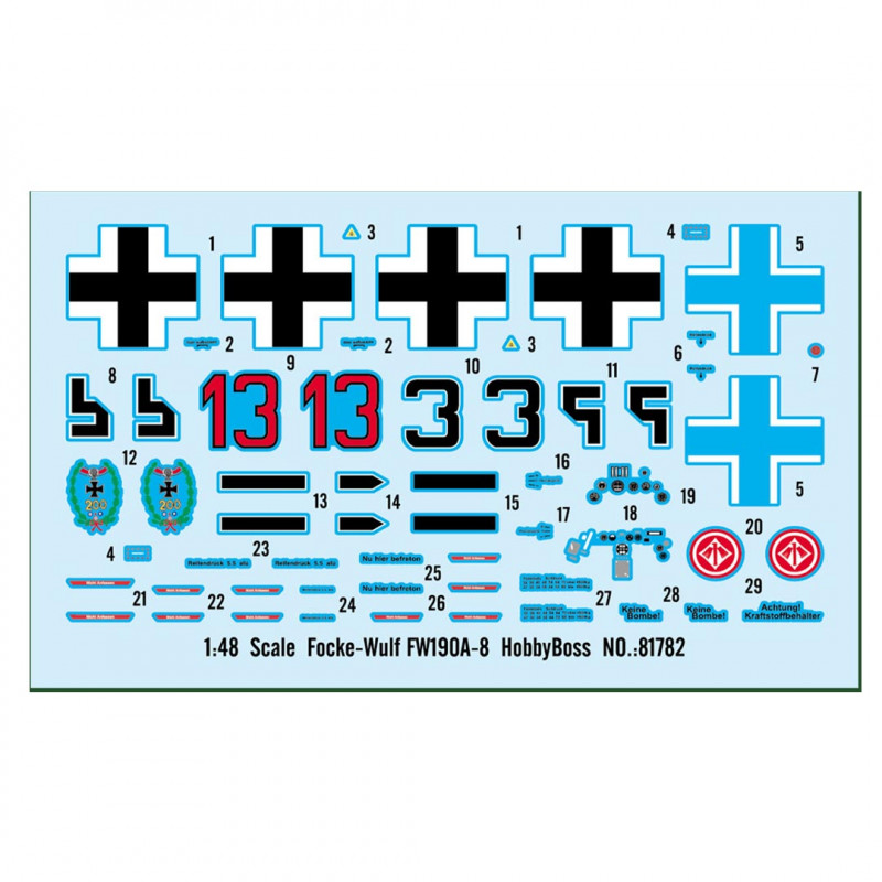 El Focke-Wulf Fw190 fue un avión de caza monoplaza y monomotor de la Luftwaffe, y uno de los mejores cazas de su generación. Ampliamente utilizado durante la Segunda Guerra Mundial, se construyeron más de 20,000 ejemplares, incluyendo aproximadamente 6,000 modelos cazabombarderos. Su producción se extendió desde 1941 hasta el final de la guerra, período durante el cual la aeronave fue continuamente modernizada. El Fw190 A-8 entró en producción en febrero de 1944; era una versión con blindaje y armamento reforzados. En total, se construyeron al menos 1,334 aviones de la serie A-8.
