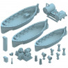 La caja contiene una impresionante variedad de piezas: 163 piezas de metal, un puente que imita madera, 25 piezas de resina, 6 láminas de fotograbado y calcomanías.