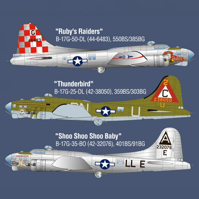 De nombreux B-17 étaient identifiés par leur peinture de guerre appelée également « Nose Art » ce kit vous permet de choisir entre 6 décorations.