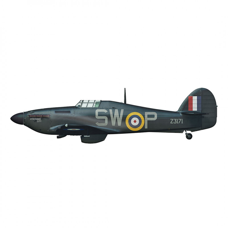 • Hurricane Mk IIb Z3171/SW-P “Hyderabad City”, No. 253 Squadron RAF, Hibaldstow, pilot F/SGT. J.C. Tate, winter 1941/42