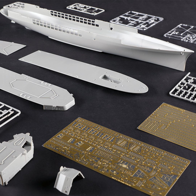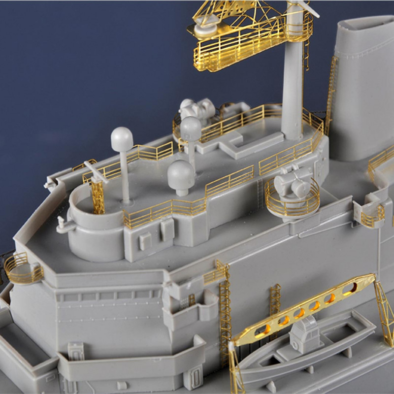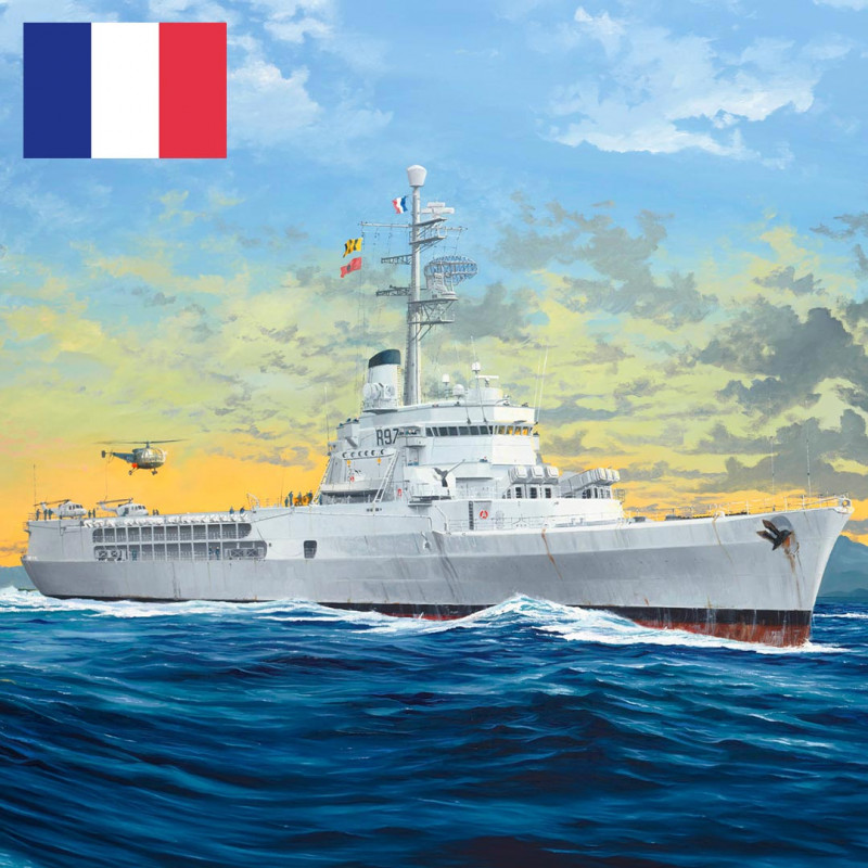 Maquette plastique du bateau Jeanne D'Arc, le plus célèbre croiseur porte-hélicoptères français à assembler par collage et à peindre.