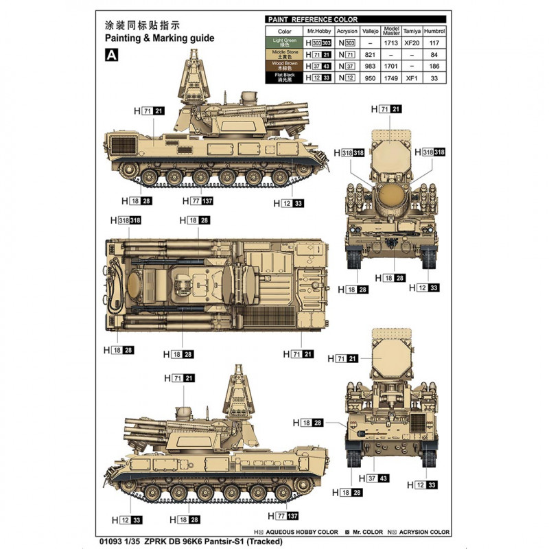 Plus de details En stock, disponible immédiatementMaquette de char en plastique ZPRK DB 96K6 Pantsir-S1 (Traked) 1:35