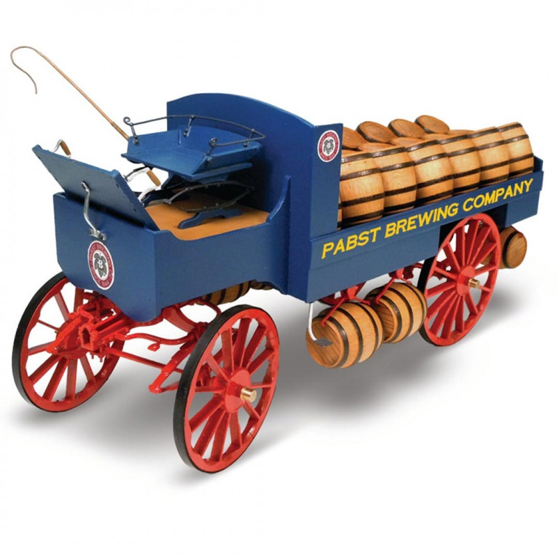 L'exemple que nous avons sous les yeux, issu de la brasserie Pabst Brewing Company, est une réplique fidèle de ces chariots qui étaient en service au 19e siècle.