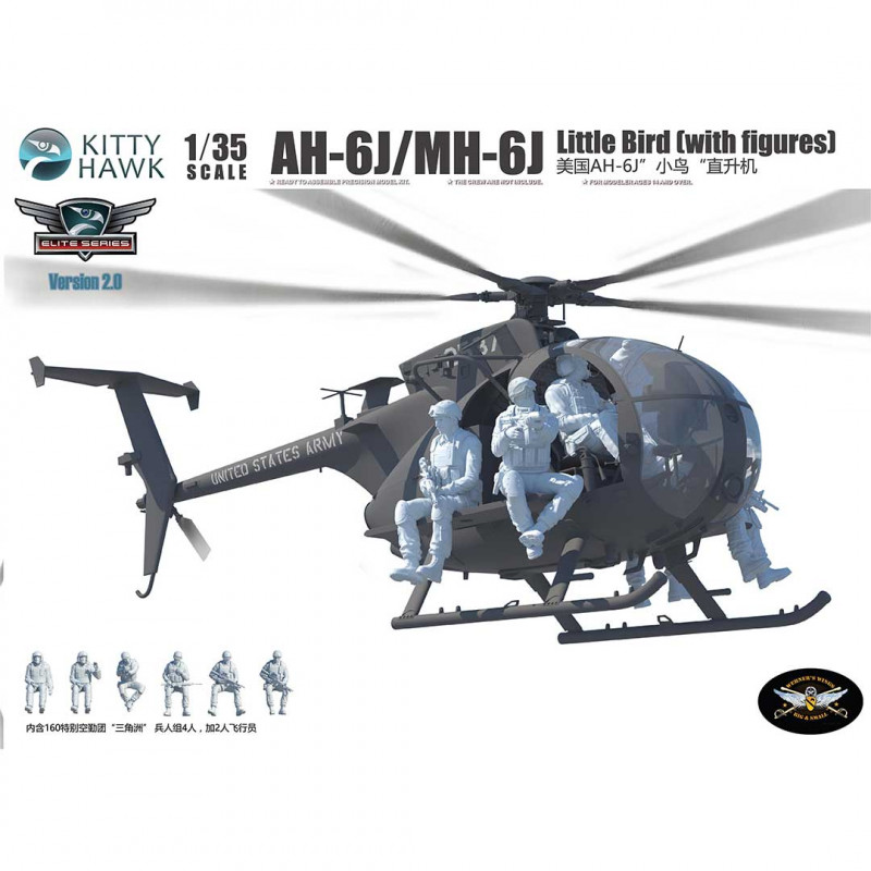 Maquette en plastique à monter de la célèbre marque KITTY HAWK d'hélicoptère MH-6 Little Bird à l'échelle 1/35.